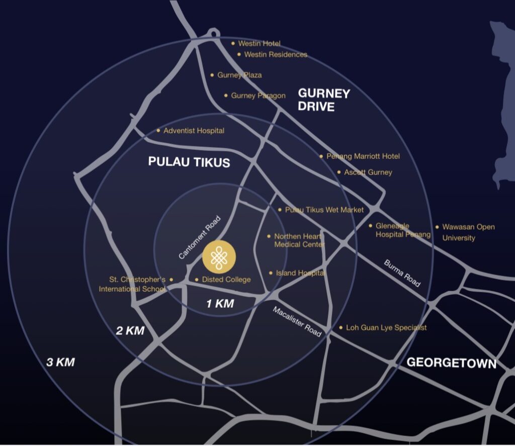 Connectivity at your doorstep. Located in the prestigious heart of Pulau Tikus, Cantonment Residence keeps you seamlessly linked to Jalan Kelawai, Jalan Burma, and Gurney Drive. Whether by car or the Rapid Penang network, the island’s finest dining, medical hubs, and shopping are all just minutes away